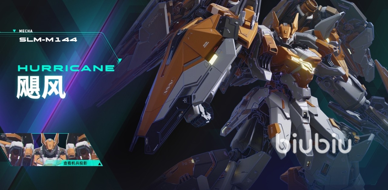 6、飓风。这是“地狱火”姐妹机型,该机搭配了爆破弹和多种无人机,可以在战斗场景中轻易吸引和拦截大量敌军火力,有效保存友军战力、降低作战损失,这是一家很不错的防御型机甲。