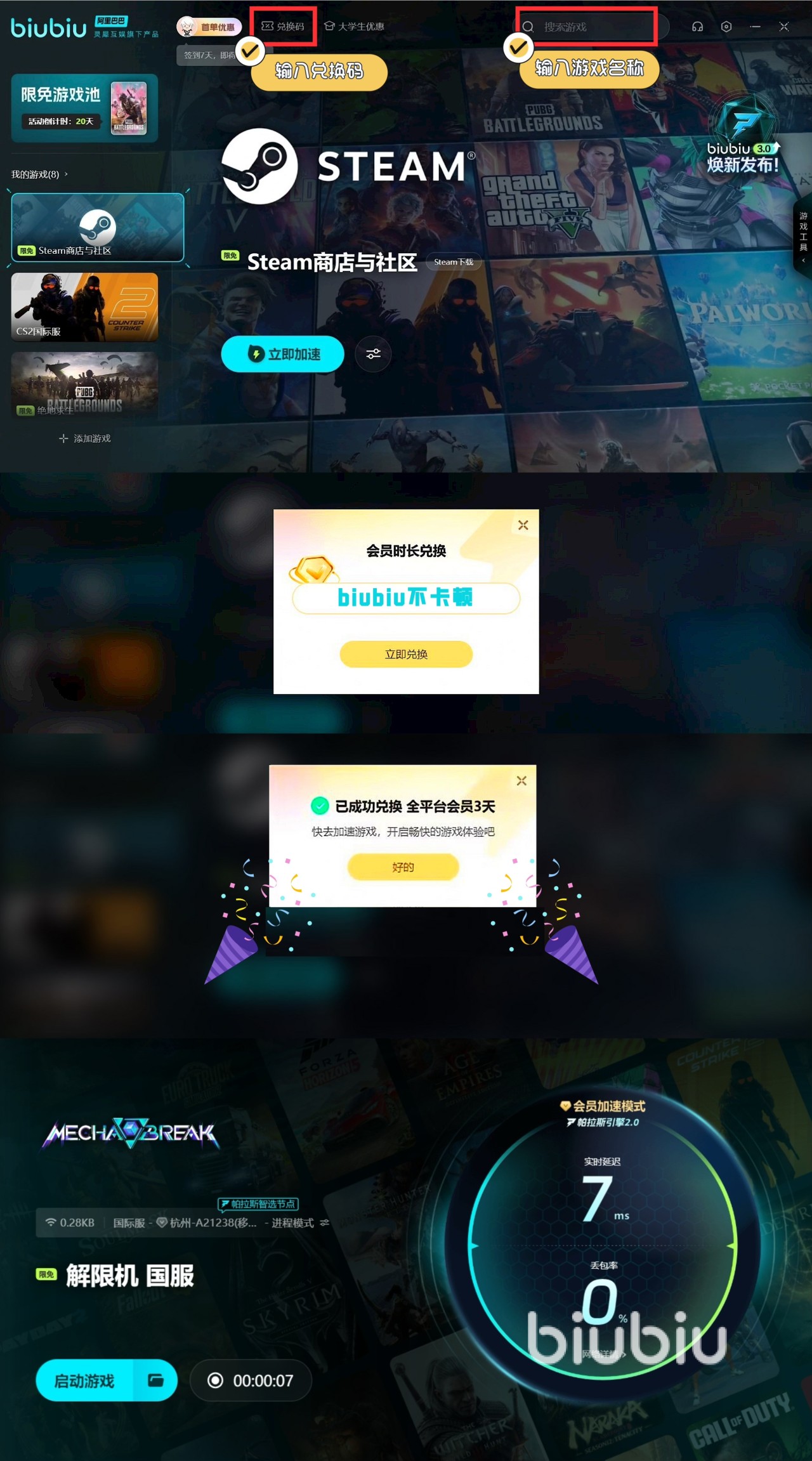 在最后给玩家们介绍下在biubiu上领取免费加速的过程: