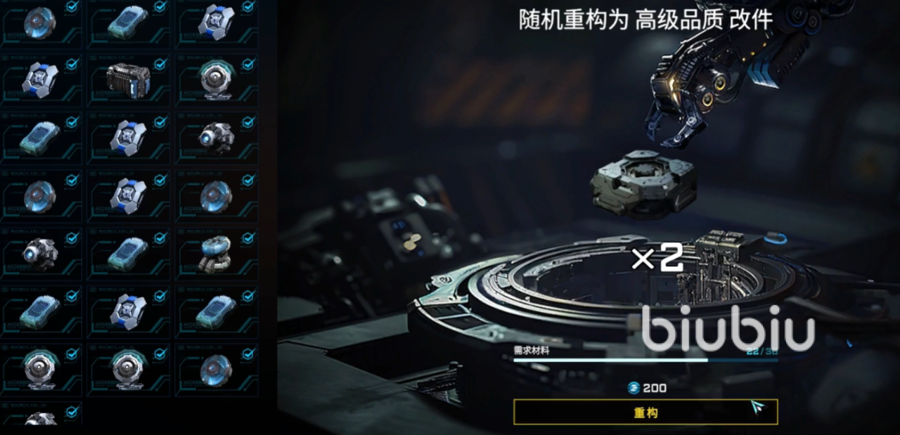 当你拥有多个低品质的改件之后,也可以选择将其合成为一个全新品质的改件。不过可以获得紫色或者橙色改件的概率会低很多,要花费200银币,以及多个白色品质改件,就有概率可以合成更高级的改件。