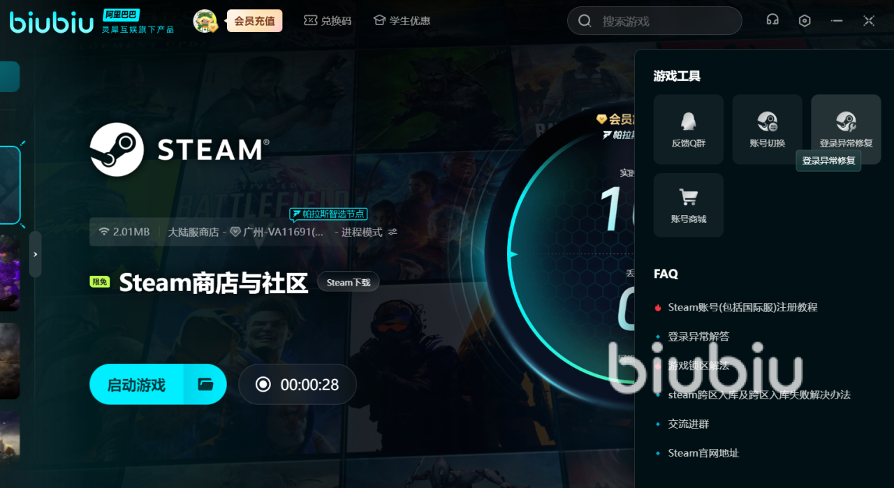 除了为PC游戏提供加速服务外,biubiu右侧的工具箱还提供各种异常修复,它提供简单易懂的游戏工具与设置指南,帮助你快速完成操作,即使是电脑小白也能轻松在家解决异常。