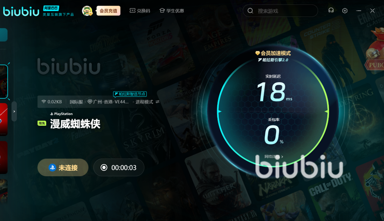 《漫威蜘蛛侠》巧妙结合了动作、冒险和剧情,游戏画面精美,从阳光下的城市广场到夜晚街道的霓虹灯光,每一幕都充满生气,配上动感十足的音效和配乐,完美提升了游戏的沉浸感。然而,在高画质的背景下,许多玩家会遇到闪退和掉帧问题,尤其是显存爆满时。此时,建议调整设置,降低分辨率和特效,以减轻图形处理压力,提升游戏流畅度。但是这些并不能根除问题,如果大家还有频发强退,那大概率是网络波动引起的故障,为了解决这些问题,Biubiu加速器将是你的理想帮手!
