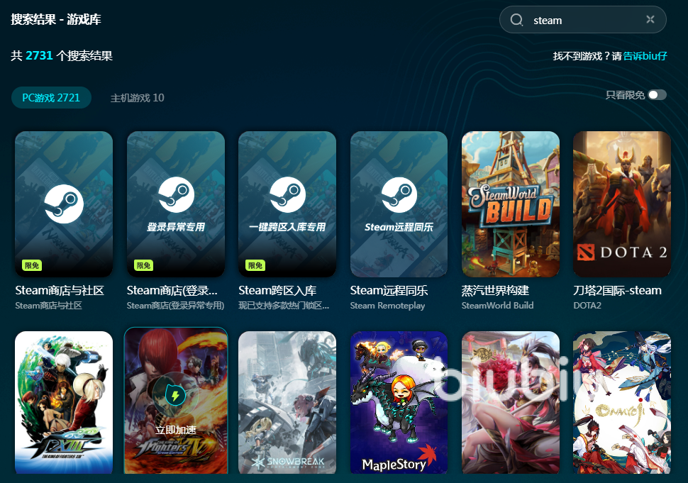 biubiu里有很多资源,大量正规游戏加速资源满足不同玩家的需求。游戏库还贴心把各种游戏分门别类,在里面既能看到最新游戏,又能玩到时下热门的游戏,丝毫不担心跟不上新游更新的潮流和速度。而且平台还准备了限免游戏池,里面的游戏都能免费加速,就算biubiu会员到期也能加速畅玩。