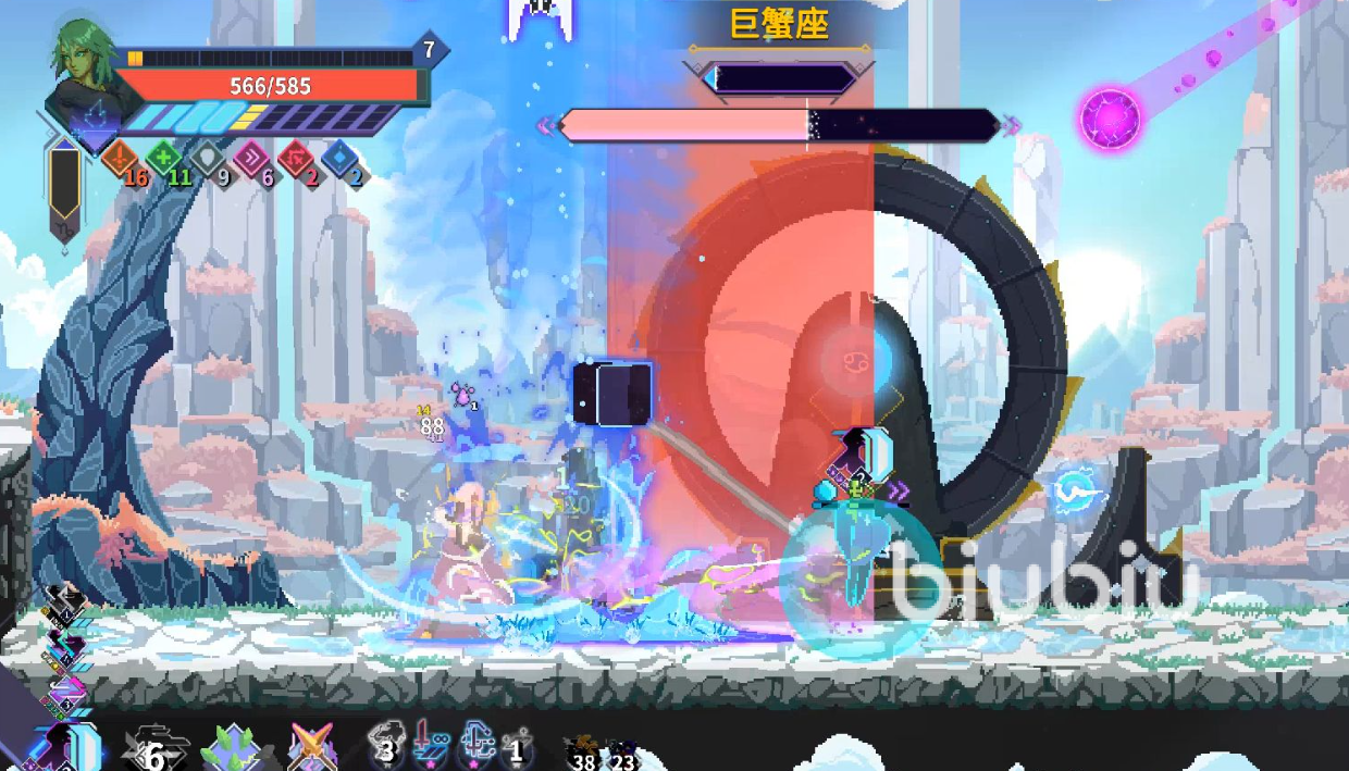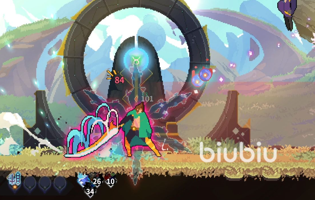 这款游戏的内容基本上还是围绕肉鸽题材为主的,在初级的战斗过程中,使用普通攻击和技能去打出连携攻击,而在前进的过程中会遇到不同的光环以及赐福,也就是各种类型的buff,这些buff会强化角色的属性以及攻击方式,从而打到最后的boss。