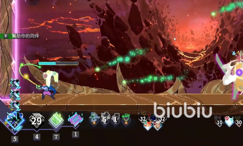游戏中目前能支持两人联机,联机的时候可以互相看到双方的词条以及能量条,其他方面的buff也是可以共享的,这时候两个人可以选择不同的流派进行作战,而且容错率相对来说是高很多的,因为有一方的可以救助另一方的,这使得高难度地图的难度降低了很多。