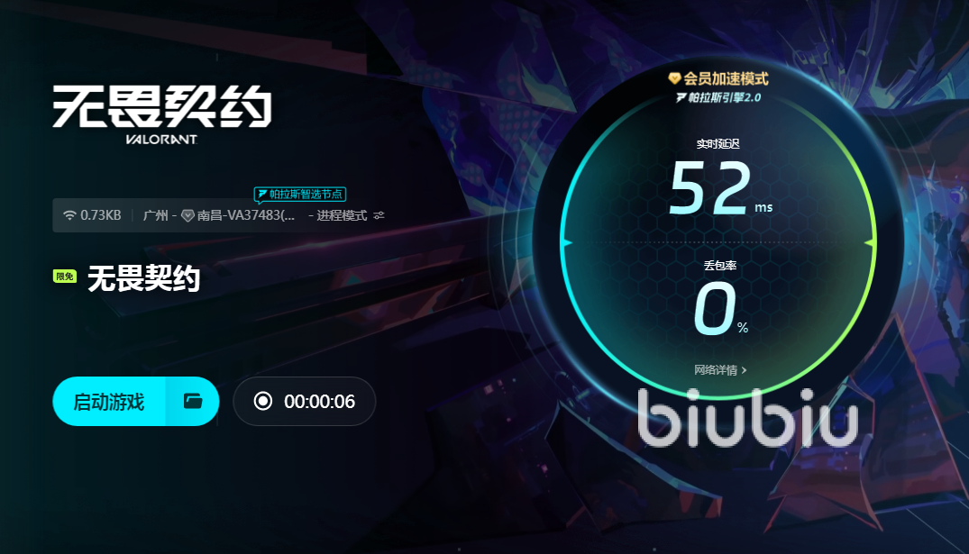 无畏契约一共提供了20多个不同的英雄角色,分为守卫、先锋、决斗等不同类型,每个角色都设计了一套独特背景故事,有着自身外貌特征和专属性能组合。游戏重视玩家射击的精准度和武器伤害,射击手感制作的非常流畅,需要大家根据不同的地图和战术,选择不同类型的角色形成平衡的阵容,发挥团队的最大优势,是一款将个人技术和团队配合结合的非常出色的竞技游戏。玩家的技术可以不断锻炼,团队配合能够通过磨合提升,但是网络带来的劣势是一定要克服,biubiu加速器就是为了这类游戏而设计,可以带来非常出色的网络,达到了电竞级标准,是现在很多玩家都选择的工具。小编今天提供给大家一个兑换码【biubiu不卡顿】,兑换码每个biubiu号都能用一次,兑换得到三天会员时间。另外如果是刚刚注册的新号,能直接领3小时会员,每个新号都能领到。