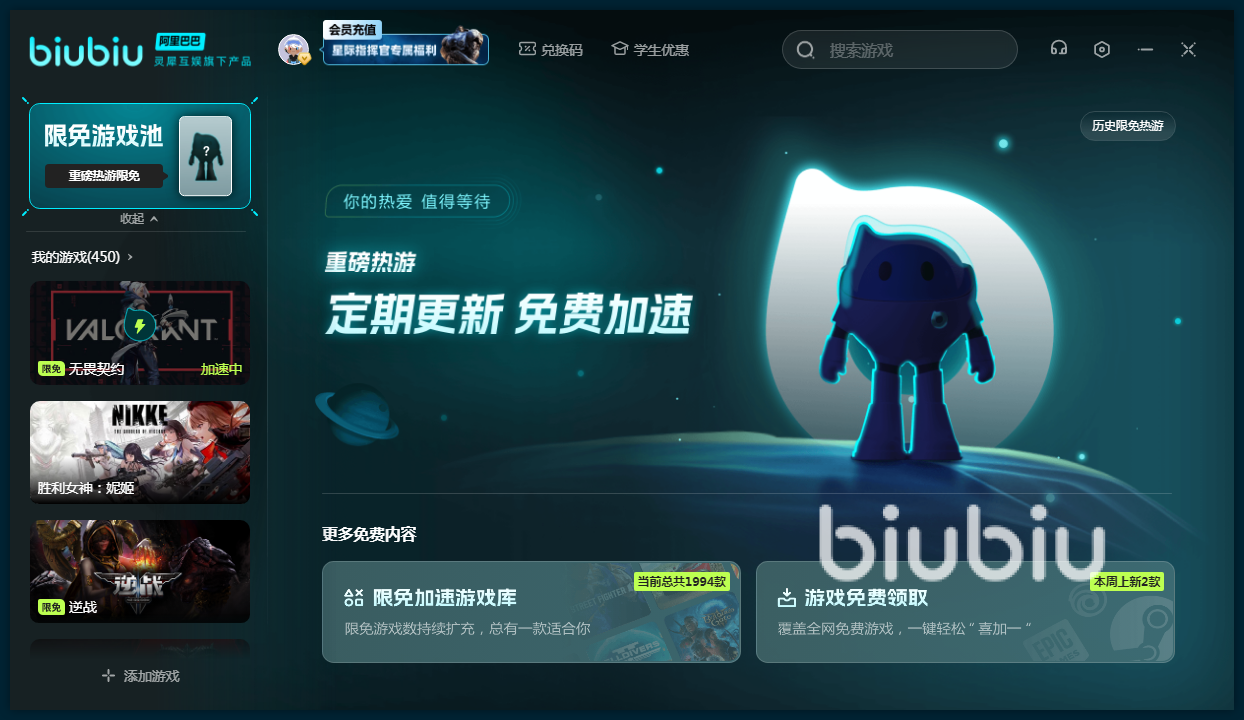 如果大家之前没有用过biubiu,现在想尝试一下效果,那么只需要注册一个新账号,直接就能领三小时会员时间,这是每个新号都能享受的福利。用完三小时后也不要着急,还有一项是兑换码【biubiu不卡顿】,能直接换三天会员时间,不仅仅是新号,之前老号也能使用,每个号都有一次机会。Biubiu目前采用的加速节点技术,可以大幅度提升本地电脑和游戏服务器之间的网络传输速度与质量,达到最大化的优化加速效果。还开发出了完善的智能节点推荐系统,自动为本地电脑和游戏服务器之间进行匹配,找到最优节点,减少选择带来的困扰。但是因为部分用户的网络状况,和游戏自身特殊性缘故,如感觉智能推荐的节点加速效果不佳,也可以在加速页面中手动更换节点来进行解决。