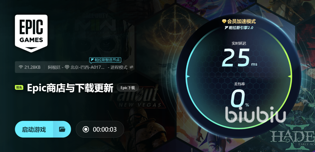 另外,biubiu启动速度也非常快,在biubiu的主界面编辑epic,或者玩家们想要玩的游戏,直接启动加速。然后把搜索的内容直接添加到biubiu的游戏库中,当下一次想玩的时候,直接在biubiu就可以启动游戏了,节省时间的同时也不需要来回切换了,在后台关于游戏的运行状态,直接就能查看,国内的伙伴们就再也不需要距离远的问题了,根据自己的需求选择就可以了。