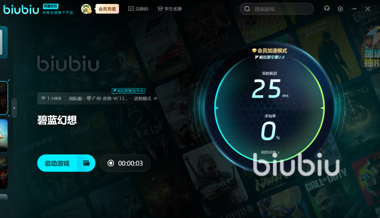 biubiu的使用超简单,几乎不需要任何复杂设置。在首页搜索“碧蓝幻想”,选择需要加速的游戏版本和服务器区域,轻松点击一键启动,便可享受快速稳定的加速效果。不仅如此,它还支持碧蓝幻想的多个区服,还能同时加速对应的平台,解决了国际服玩家之间的连接问题,覆盖全球多地区的节点,确保你无论身处何地,都能享受极速的游戏体验。