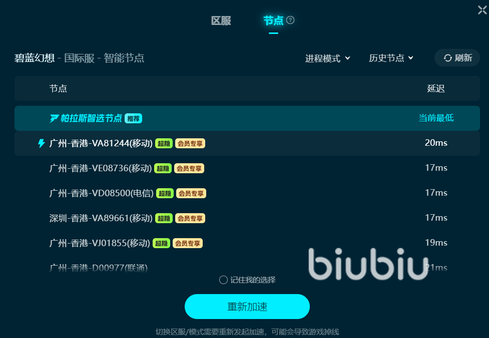 biubiu拥有专门的海外专线,通过电竞级的专线连接,能够快速、稳定地连接到各种海外服务器。这样不仅能够避免登陆失败,还能在连接后保持稳定加速,无需担心掉线或卡顿。低延迟的加速效果,让你在激烈的联机副本挑战和大规模Boss战斗中更加稳定。
