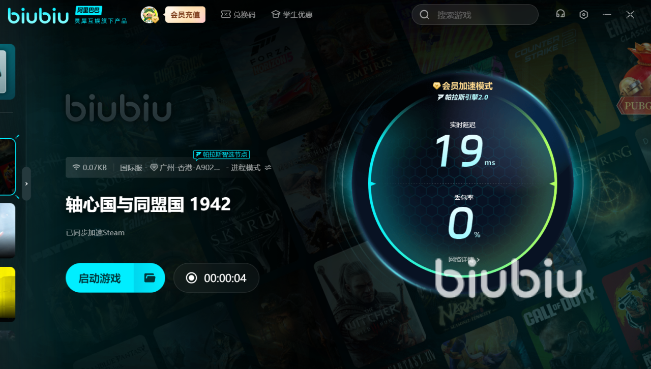 使用方法非常简单,进入首页后直接搜索“轴心国与同盟国”,默认就是国际服,biubiu会智能匹配最适合的加速节点,自动开启加速,无需排队以及额外下插件,直接享受流畅的游戏体验。