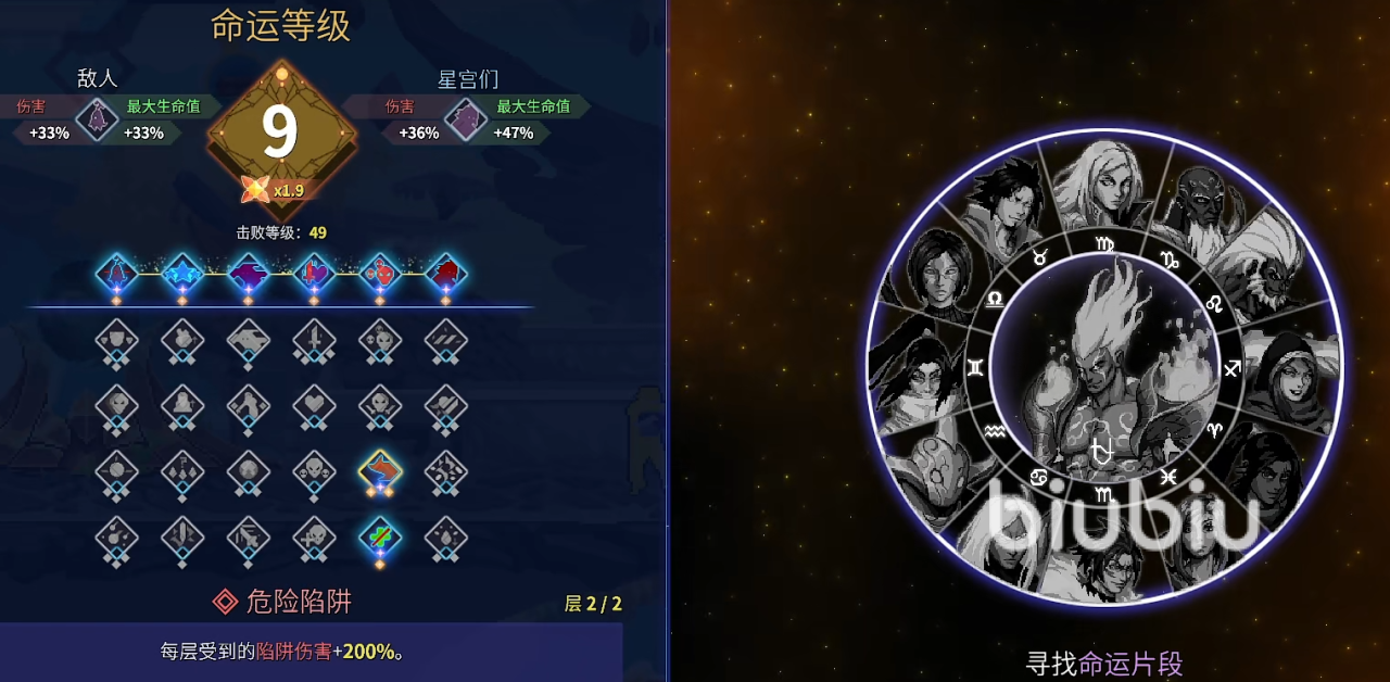 所以你想继续挑战难度更高的副本,首先我们要把诅咒的根源点了。到时就不会出现治疗室了,不过这样又不会加强怪物。可以将危险陷阱拉满,我们只要避过陷阱的话,就可以无视陷阱伤害了。然后想要继续加强等级的话,再选择一些新的debuff,就可以让难度继续上升。