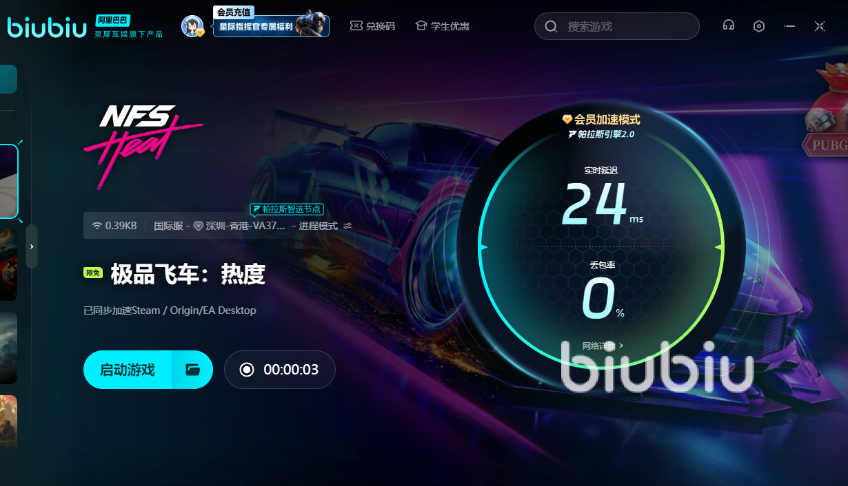 极品飞车热度中的比赛强度很高,要是突然卡住的话,就很容易被其他赛车手超越,并且远远的甩在屁股后面。所以要用上biubiu,能让自己一鼓作气,成为队伍中的领头羊。新用户的话可获得3小时的免费加速,然后新老用户输入【biubiu不卡顿】,就能额外领取三天免费加速。如果即将抵达终点时延迟高,有可能撞在墙上并无法冲刺了,从而让自己与冠军失之交臂。用上加速器后,他们在最后一刻稳定冲过终点。