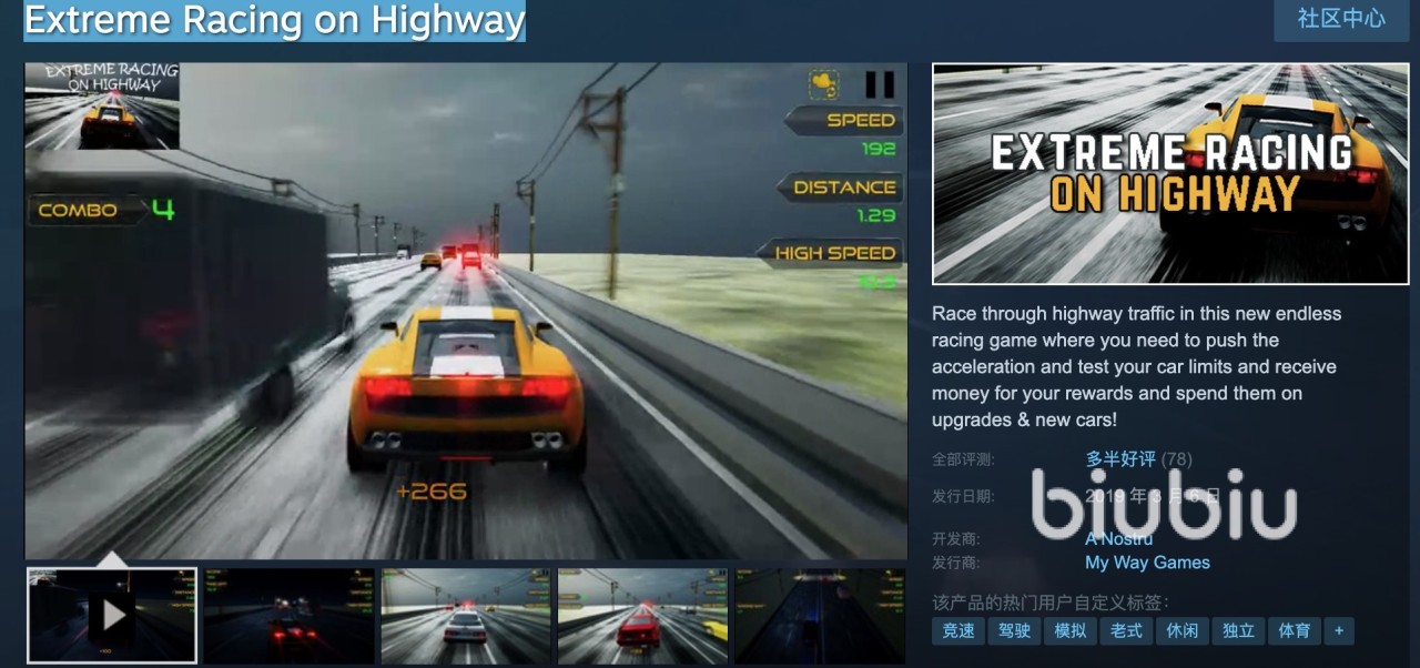 Exteme Racing on Highway上线日期是2019年3月6日,是一款集休闲、独立、竞速、模拟与体育元素于一体的精彩游戏,由A Nostru团队精心打造,并由My Way Games荣耀发行,。