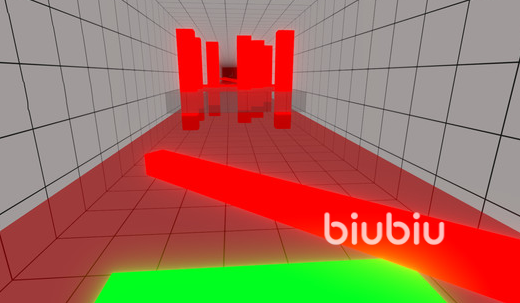 这是一个像素格子画风的闯关游戏,我们主角使用第一人称视角操纵绿色格子,去越过各个红色的方块,圆柱体障碍物。它发售的日期是2018年1月23日,这么古早的玩法,是符合当时游戏潮流的。