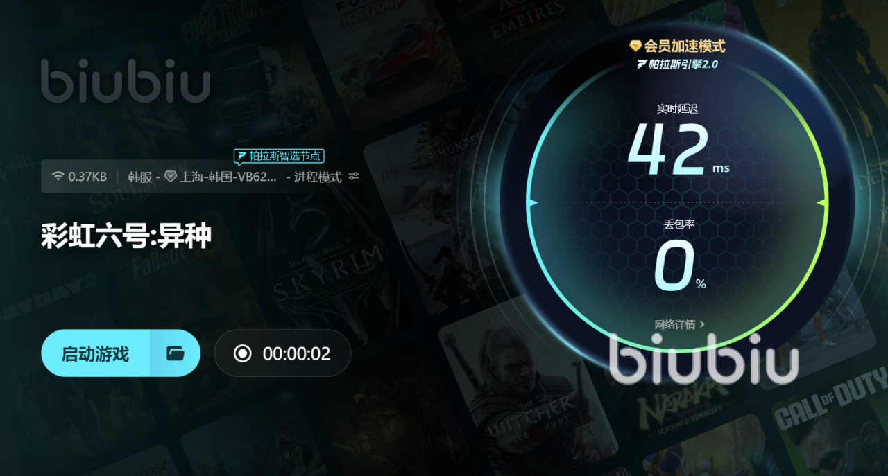 对于参与全球竞技的国内玩家们来说,biubiu加速器更像是打开国际服务器大门的一把钥匙。通过biubiu的扶持,可以帮助玩家们轻松突破地域限制,与世界各地的玩家并肩作战,体验最原汁原味的彩虹六号:异种。新用户注册即享3小时免费加速服务,另外输入特定口令【biubiu不卡顿】后,还能额外获得三天的加速福利,让大家可以尽情沉浸在游戏的世界里,探索每一个角落,挑战每一波怪物。