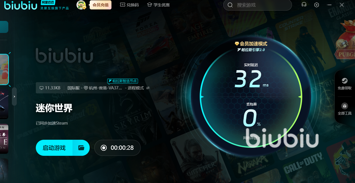 除了强而有效的功能外,简单的操作页面和丰厚的福利也是biubiu的优点。例如新用户注册登录就能立马获取的3小时加速时长,就可以让朋友们先体验一下强大能力,后续还想体验也能用【biubiu不卡顿】兑换码获得3天加速时长。如果想购买成为正式会员,也有首充优惠和大学生认证优惠提供给大家。