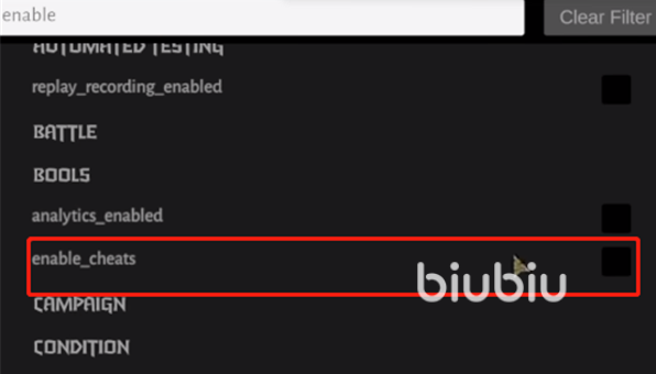 这时候选项是增加了的,我们选择第5个e开头的选项,继续点击进入,在输入栏输入enable,然后勾选enable_cheats,回到游戏加速功能就开启了。这时候我们使用alt+↑就可以加速动画了,很省时间的。
