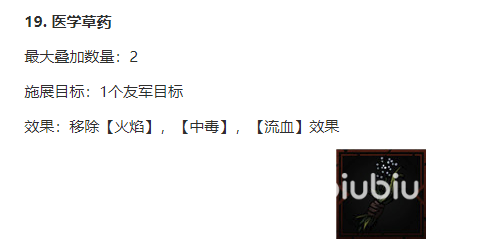 在使用方面,当队伍中的角色受到上述负面效果影响时,在战斗中可直接选择医学草药对该角色使用,鼠标点击医学草药图标后再点击需要解除负面效果的角色即可。一般优先对脆皮输出角色或关键辅助角色使用,如小丑、修女等,保证他们能持续稳定地发挥作用。