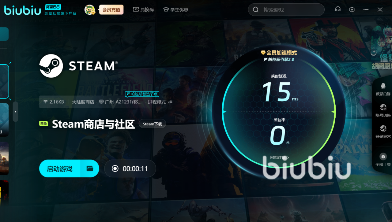biubiu特别适合弱网环境,在家也能通过优化提升网速,达到电竞级网速,让你体验更流畅的游戏过程。它拥有多条专业游戏加速线路,支持多个地区的Steam服务区服,能够帮助玩家在全球范围内轻松连接游戏服务器,保证网络稳定、迅速地连接,特别是高峰期的网络拥堵问题不再困扰你。通过biubiu的智能加速,你可以轻松克服网络问题,提升游戏体验,保证游戏的顺畅运行。