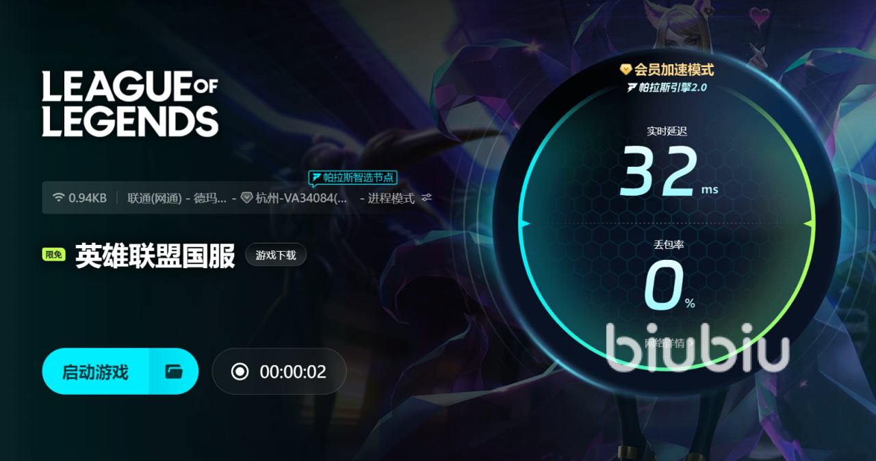 有时候网络方面也会导致闪退,比如说网络实在太差了,这时候就会出现闪退,需要重新载入,这对于lol是很致命的,因为每分钟都会出现不同的转折点,而且还会拖慢跟对面的经济发育速度,所以为了避免这种情况,就可以使用biubiu加速器进行一键加速,并且新人在注册后便获3小时免费加速,新老用户均可使用兑换码【biubiu不卡顿】可获3天免费的使用权哦!