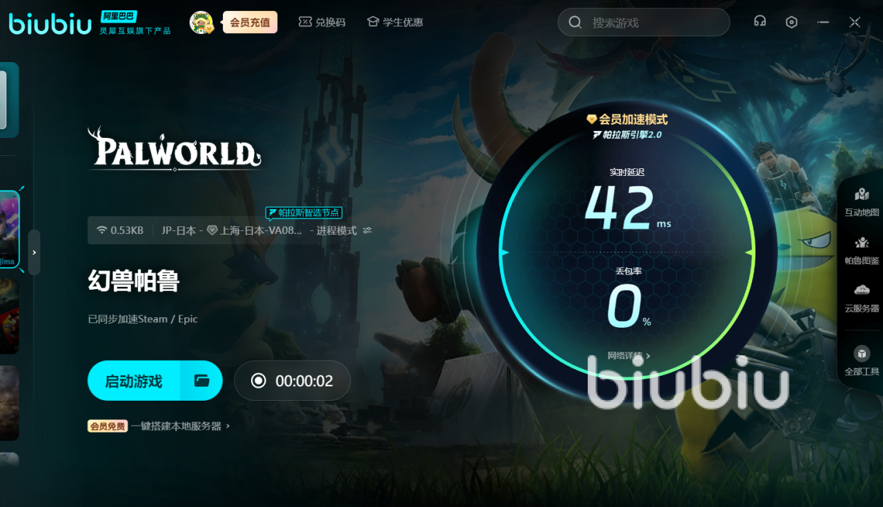 幻兽帕鲁的世界不仅广阔,还有一个开放的多人模式,最多支持32人同游,想和朋友们一起冒险,挑战世界级怪物,激烈对抗的乐趣几乎让人停不下来。然而,由于游戏服务器位于海外,国内玩家在联机时很容易遭遇网络延迟、卡顿甚至掉线的尴尬。这时候,高效的biubiu加速器就显得尤为重要了,它能通过智能优化你的网络连接,减少波动,带来更流畅的联机体验。