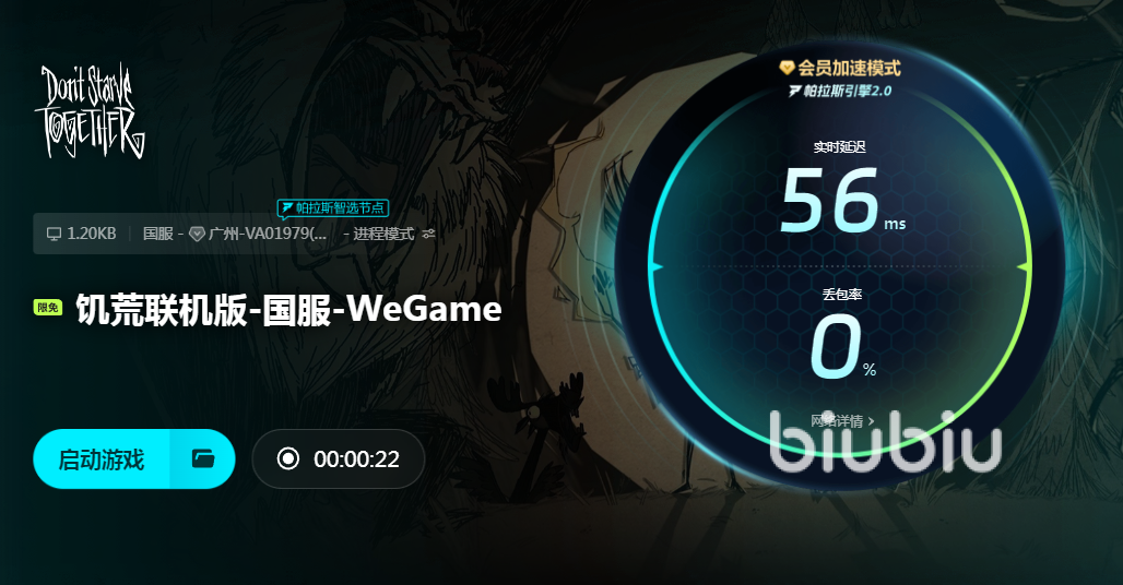 虽然饥荒玩起来很休闲,但不代表它对网络没有要求,当联机的时候只要有一个玩家掉线卡顿,就会影响团队整体的生存进度。大家通过biubiu一键加速网络,如果之前的网络很卡顿,加速以后就会发现卡顿再也没出现了,网速快到难以想象,操作一点延迟都没有,所有的指令都能立马完成。