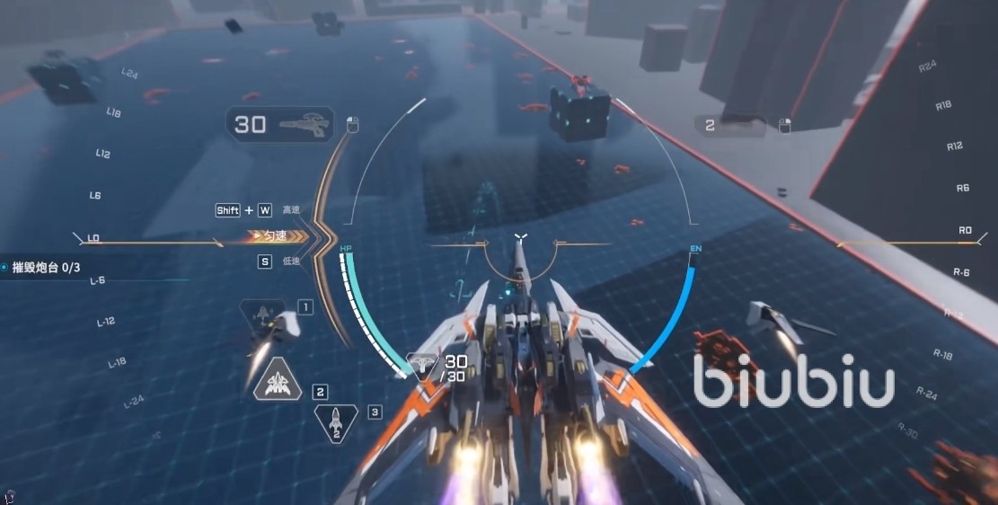 在实际作战过程中,点击鼠标左键能释放能量机炮,如果长按的话可以进行二连发也可以进行蓄力攻击;右键则是能发射能量爆破弹来攻击目标,在遇到目标后会爆炸造成可持续性的范围伤害。1技能是干扰导弹,在命中时可以让对手机甲的火控失效,爆炸的烟幕还可以防御非贯穿的伤害,还会大幅的削弱贯穿伤害。2技能转换为天袭形态,这个技能可以大幅提高机动性,并且短冲机动可以摆脱导弹的锁定。3技能可以对指定的位置和坐标投放导弹布撒器,抛洒大量的小型导弹。