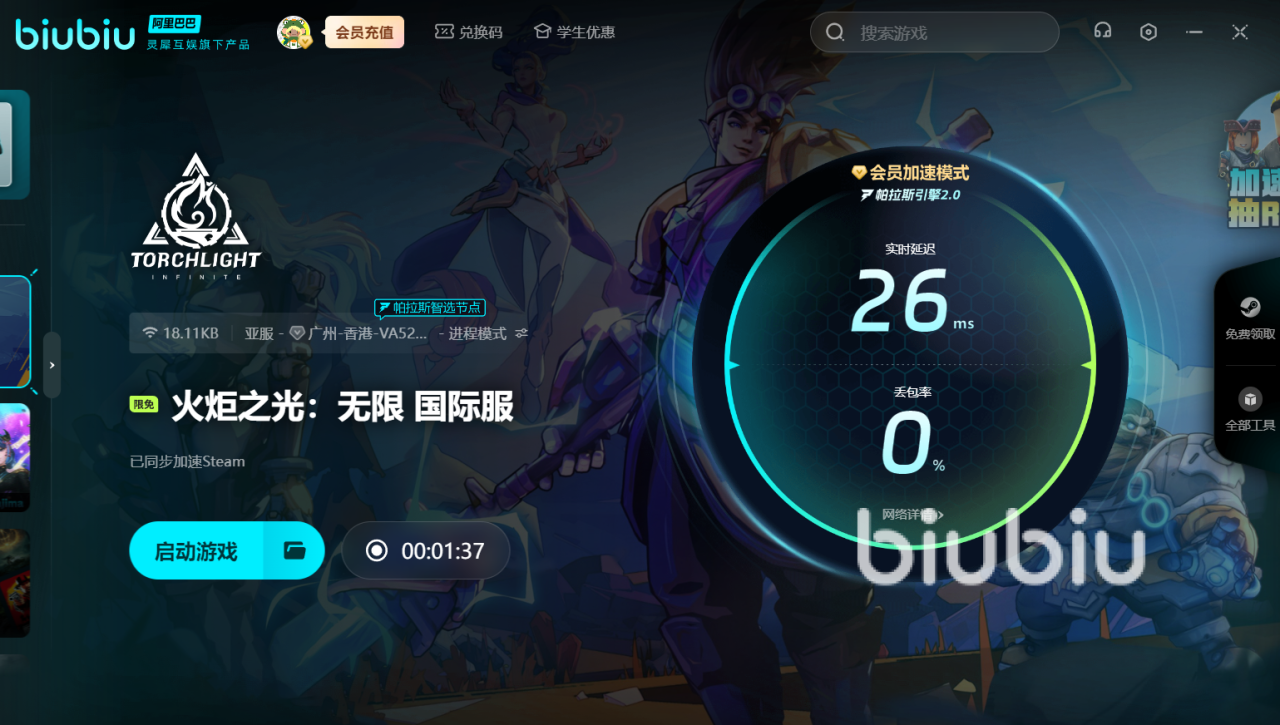 biubiu加速器是由专业团队历时多年打造的,技术成熟,已经成为众多玩家的首选。它不仅能为你提供稳定的加速服务,还能优化你的网络连接,让游戏更流畅。使用起来也非常简单,只需打开软件,搜索并添加“火炬之光无限”专属入口,选好国服或国际服,点击“立即加速”,biubiu就会帮你优化连接。