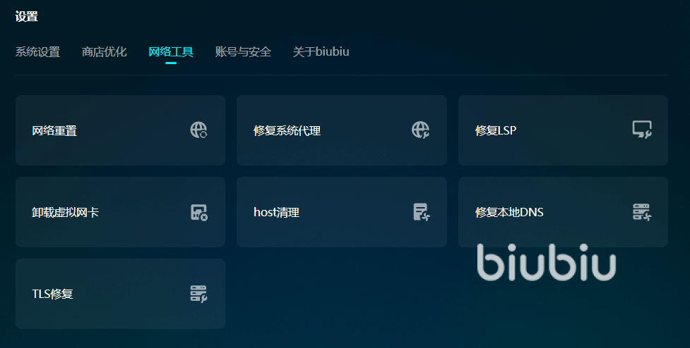 在加速之前,先用工具箱来修复一下电脑环境,很多玩家不注重电脑缓存的清理,对于虚拟网卡也是一知半解,电脑里安装了太多虚拟网卡导致它们之间存在冲突也不知道,这些都是回造成游戏闪退的潜在隐患。不过只要有biubiu工具在,这些都不是问题,轻松就能一键修复,还电脑焕然一新的运行环境,就算是单机版也不容易闪退了。