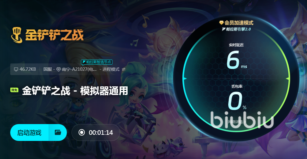 biubiu拥有手机软件和电脑软件多个端口,虽然金铲铲之战是款手游,但不少小伙伴安装了模拟器,在电脑里也能玩金铲铲。正好biubiu就收录了金铲铲之战通用模拟器的加速资源,大家不管是玩单机版还是其他版本的,都能使用biubiu来加速。