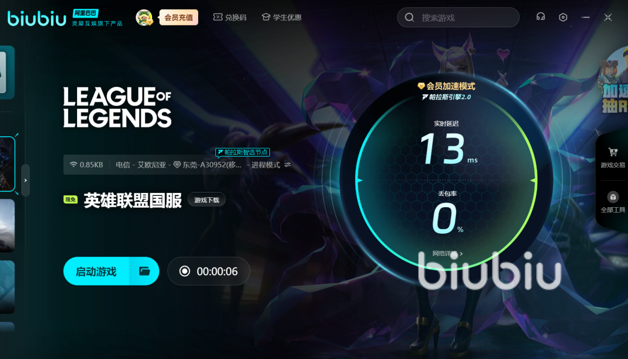 英雄联盟的精髓在于团队协作,从五黑的默契配合,到野辅的亲密无间,每一场对局都是一场考验战术与意识的较量。可是当你精心设计好的绝妙团战,因为卡顿掉帧变成了送人头,这种体验实在令人抓狂。这时候,biubiu加速器就是你最值得信赖的战斗伙伴。