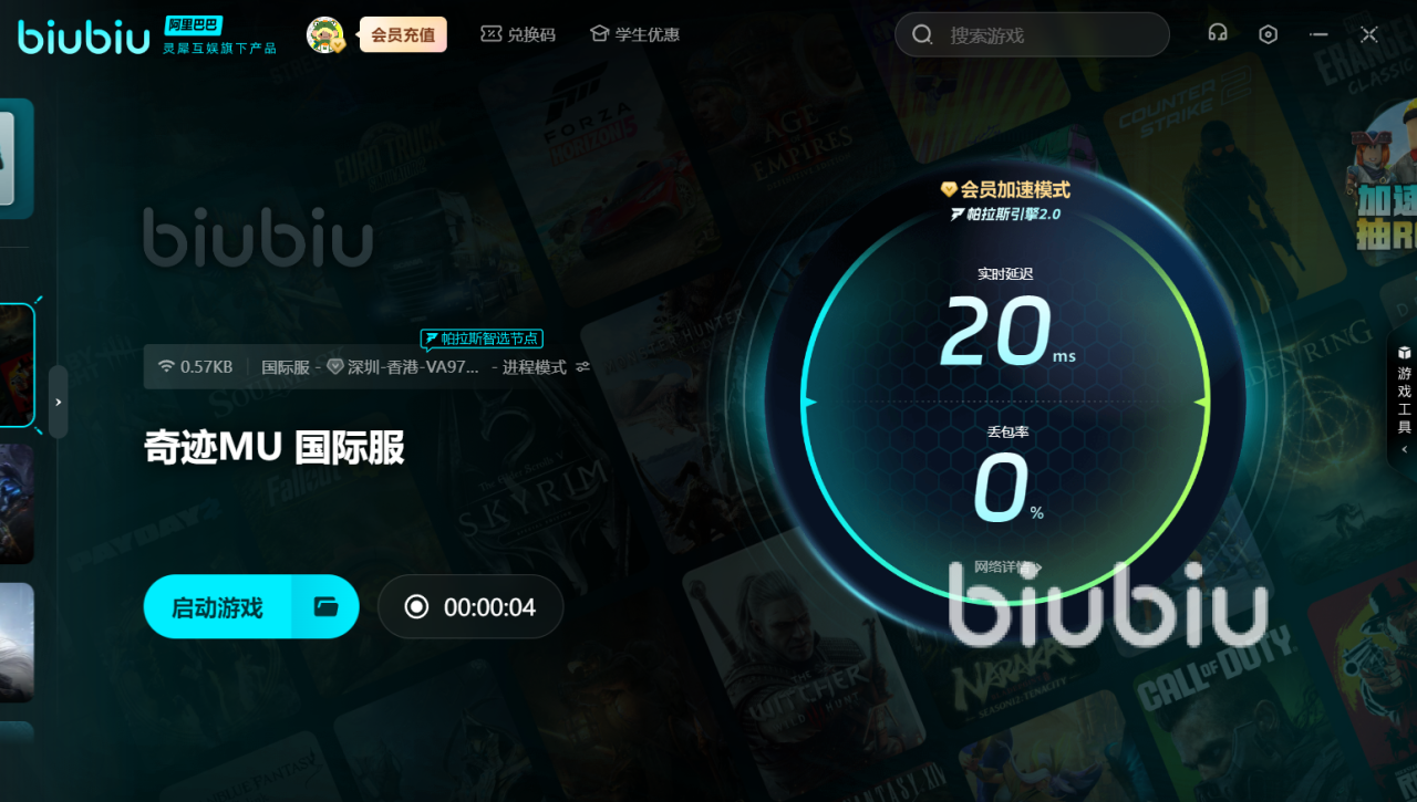 在biubiu的首页搜索“奇迹”,你可以轻松找到对应加速的入口。在这里,你会看到国服和国际服,还有其他版本的奇迹系列作品,大家只需选择自己正在玩的服务器,点击开启加速,就能一键打开。