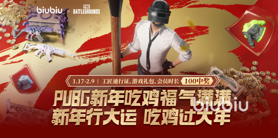 临近春节,biubiu还给广大用户准备了喜庆了pubg新春福袋,进入专题页面就能抽福袋领奖励,活动时间从现在到2月9日,大家只要完成任务就能获得抽奖次数,快快乐乐把服装、手套、通行证等奖品拿回家。