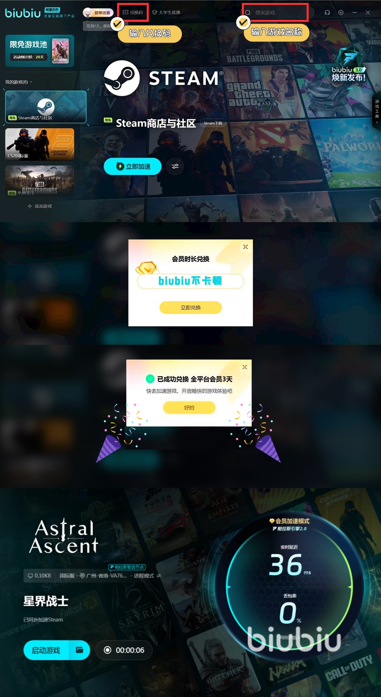 在这款二维平台的肉鸽游戏里,玩家的目标是击倒12个独特的Boss,从而逃离星界监狱。天秤座挑战是众多任务之一,要求玩家遵循特定的按键顺序来操作。为了保证网络操作的顺畅,今天小编将向大家介绍一款实用的网络加速器软件。只需注册成为新用户,大家就能享受到3小时的免费加速服务。另外,输入“biubiu不卡顿”还能额外获得72小时的加速时间。