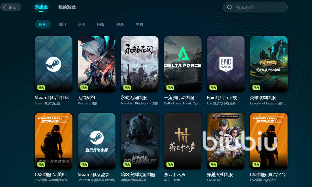 biubiu支持的游戏类型非常广泛,几乎涵盖了目前市面上绝大多数的游戏,无论是小众精品、3A大作,还是各种独立游戏,都在其加速范围之内。用户直接在平台搜索名称,快速找到对应的各版本,还有海量的限免国服游戏等你来。