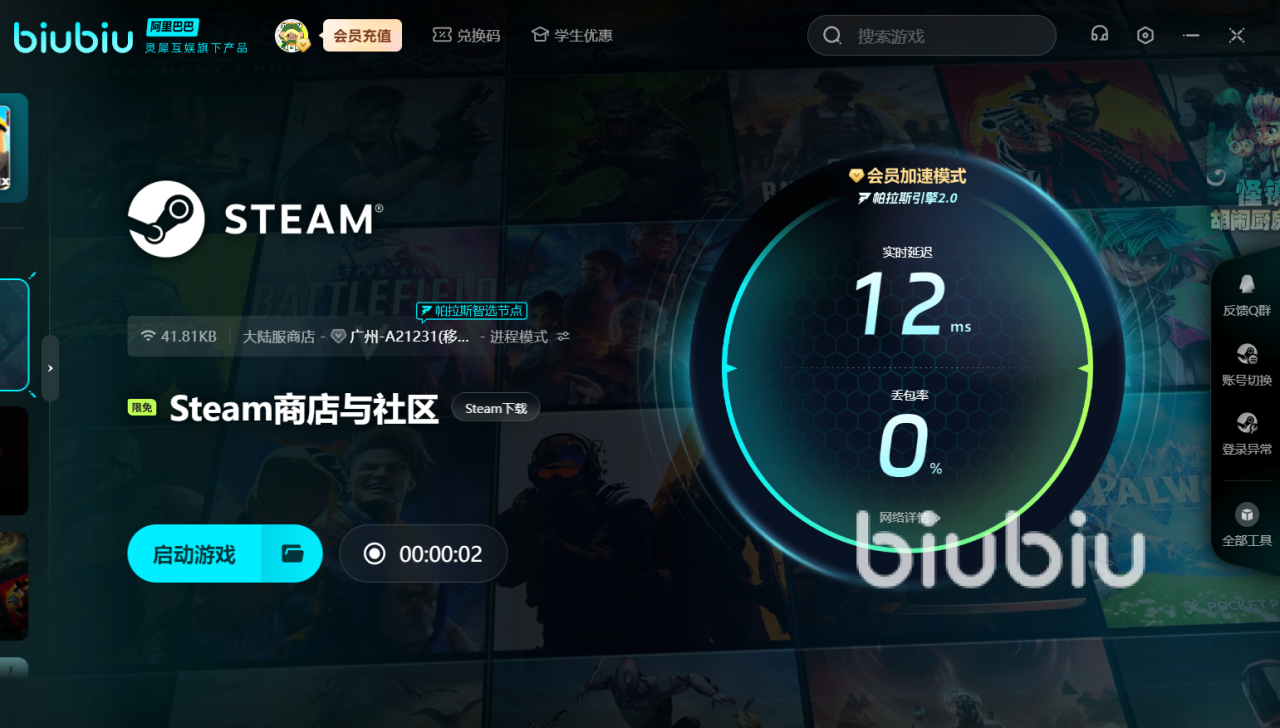 其智能节点推荐系统能够自动匹配最佳节点,最大限度地提升加速效果,解决玩家在游戏中常遇到的延迟和卡顿问题。对于少部分网络状况不佳的用户,biubiu也支持手动更换节点,进一步优化加速效果。