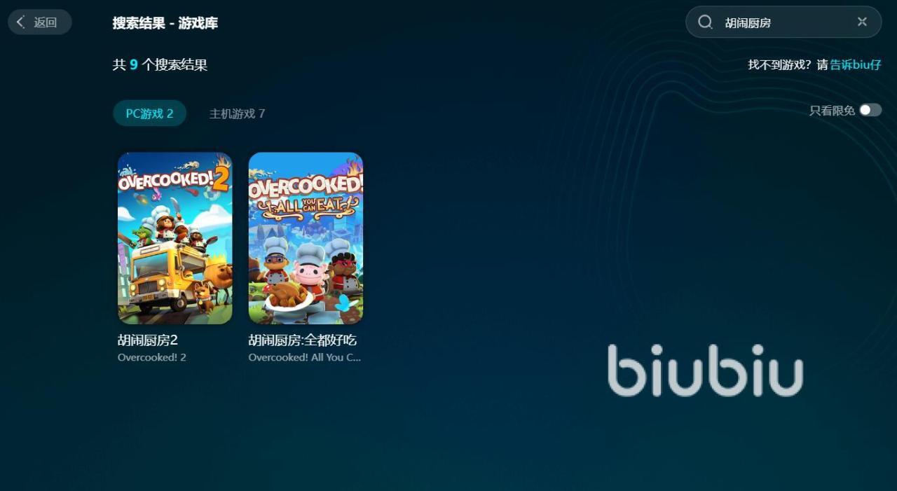biubiu支持多端加速,这个服务打破了设备的限制,让你可以根据自己的喜好和场景,自由选择游戏设备,在家中,你可以用PC享受大屏的畅快;外出时,打开掌机随时随地开启游戏之旅。如果在软件内找不到你要加速的游戏,可以及时反馈给平台,后续就会进行补充。