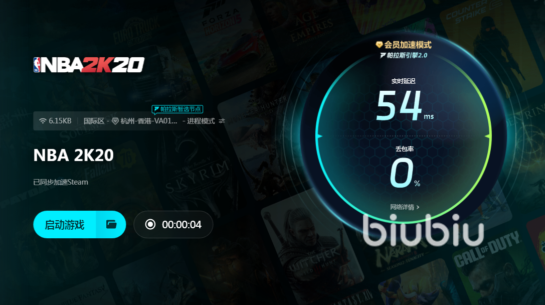 Nba2k20这款,采用的是3d画面风格打造,无论是球员的面部表情、身体体型还是一些经典动作,都非常真实的还原出来,和现实中的篮球明星极为接近。在操作方面比较细腻,需要通过精确操作,来感受篮球竞技乐趣,就如同真正比赛一般,进行传球、投篮、运球和防守,这些操作都需要技巧,同时也要快速做出反应,抓住时机。但因为很多网络其实达不到真正的快速流畅要求,所以就容易出现闪退、卡顿这样问题,虽然并不频繁,但偶尔出现一次依然很令人头疼。如果用biubiu运行,获得稳定网络,那么这样问题就不会再发生了。如果对于biubiu性能还存在着一些疑惑,就抓紧注册一个新账号,打开biubiu使用一下,因为新注册账号能直接得三小时会员时间,足够大家尝试一下具体的功能。