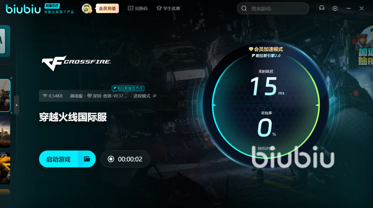 biubiu的智能节点分布在全球各地,比如国际服的大区上有美服和越南服。即使在网络不稳定的环境下,也可在其中找到合适自家宽带的低延迟节点,也能帮助你保持低延迟、高稳定的游戏连接。特别适合需要快速反应和精准操作的cf玩家,助你在战斗中领先一步,享受更高胜率。