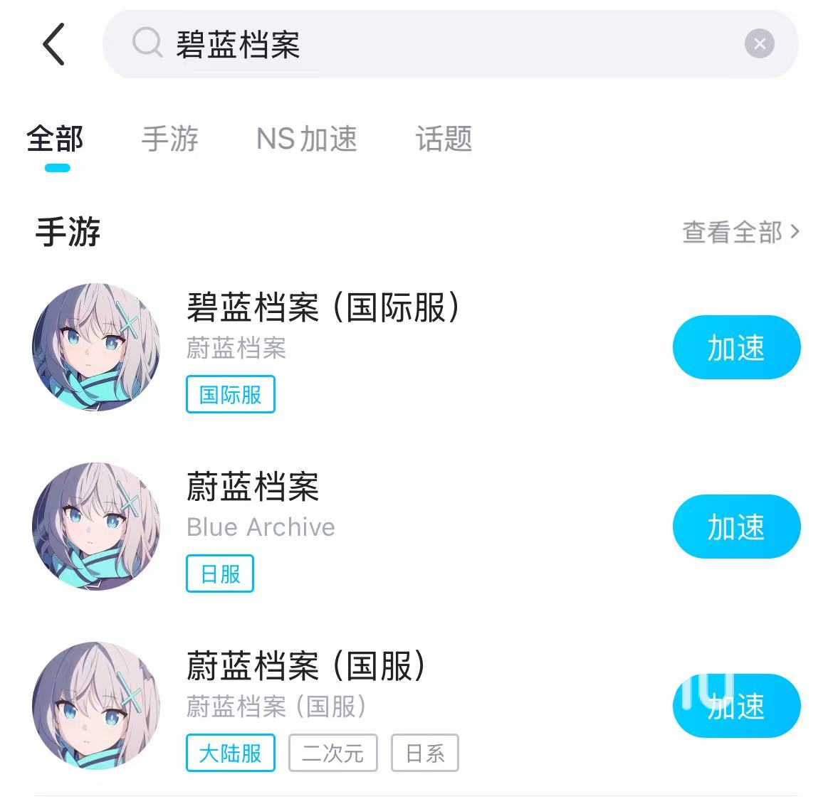 biubiu作为一款支持多端加速的加速器,给手游加速也不在话下。它加速手游是免费的,完成看视频任务就可以得到手游加速时长,每天的任务都会更新,所以不用担心免费时长不够用。biubiu里面拥有碧蓝档案国服、日服、国际服的加速资源,不管玩哪个区服都能直接来加速。