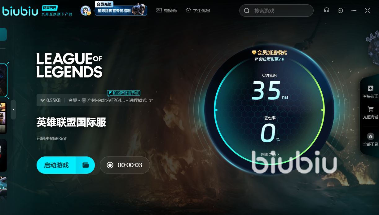 由于lol海外服务器用本地的网络很难进去,并且无法与其他人一同决战。所以建议启动biubiu,拥有好的网络后才能参加lol欧服中的对战,避免自己更快输掉比赛。新用户的话可获得3小时的免费加速,然后新老用户输入【biubiu不卡顿】,能额外领取三天免费加速。若是在补刀的过程中太卡,那就很可能补漏了,让自己发育缓慢。用上加速器之后,又能更准确命中每一个丢失的目标,防止经济雪球被滚得太大。