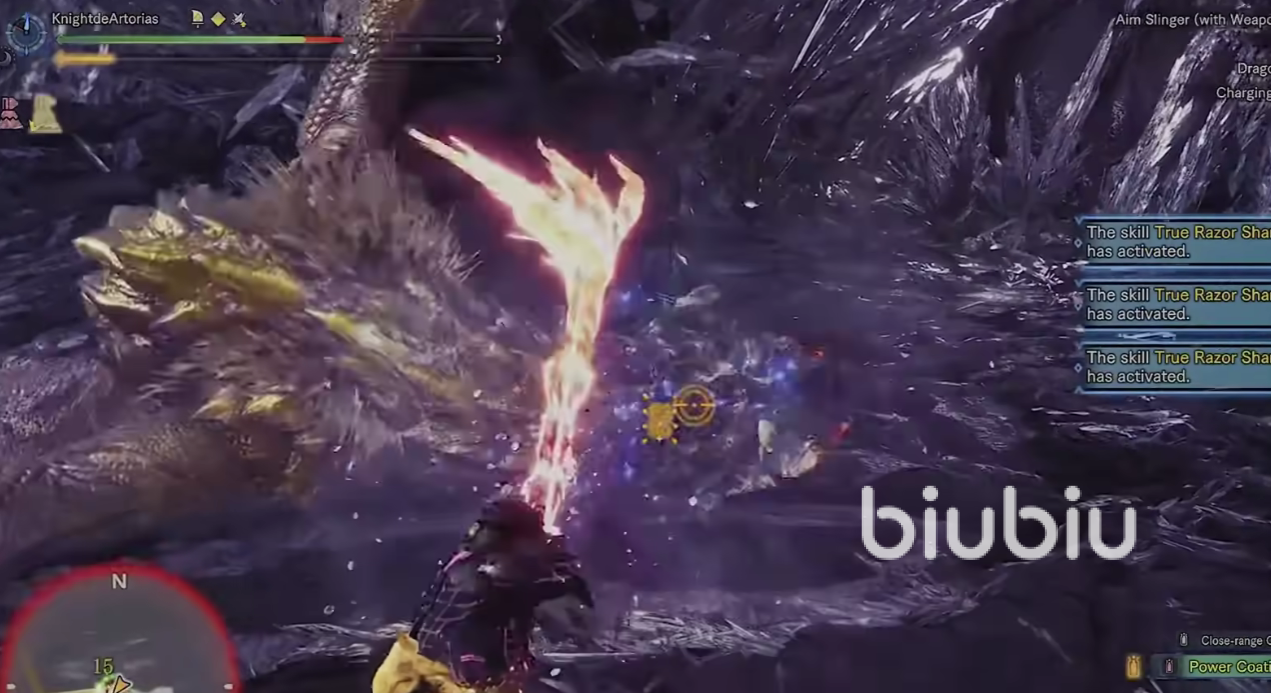 在集中攻击状态下,玩家会处于第一人称的视角,这方便了玩家进行弱点的分析,值得一提的是,并不是所有时刻都应该开启集中弱点的攻击状态,只有当玩家已经将怪物的伤口或弱点部位分析出后,才可以使用集中攻击。