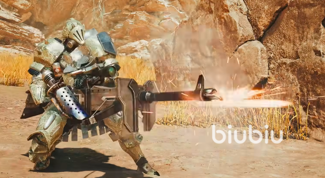 在游戏当中这个武器装备对于一些喜欢防御系的玩家来说是不错的选择,他除了手动进行防御外,在某些特殊情况下还能够自动完成防御,而且进入到冷热模式的时候可以消耗能量来发射出一些特殊弹药,冷热模式的话也会随着时间的推移或者是命中次数而逐渐恢复力量,在每一次回复完成后,攻击力量会比前一次大说很多,也就是说可以实现叠加式的高伤害模式。在玩法和体验上其实和《怪物猎人世界》里头的龙弹体验感比较相近,但是比起龙弹这个武器来说,玩家不需要硬等能量槽填满,现在的话只要成功命中怪物也能够加快能量槽的积累。
