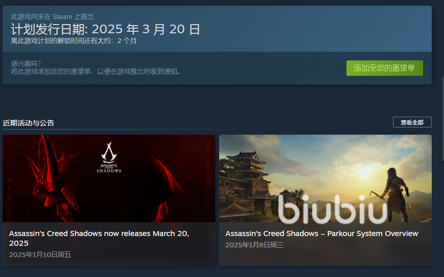 刺客信条影预售平台介绍给大家了,对于这款游戏有想法的小伙伴,现在就赶紧动起来吧,开启biubiu,在加速服务下,去正常的进行心愿单收藏吧。而且后面等正式上线了,用上biubiu我们还有下载加速效果呢,花费的时间会非常短,大家一会就能解包安装完成了,开启自己的战斗之旅。