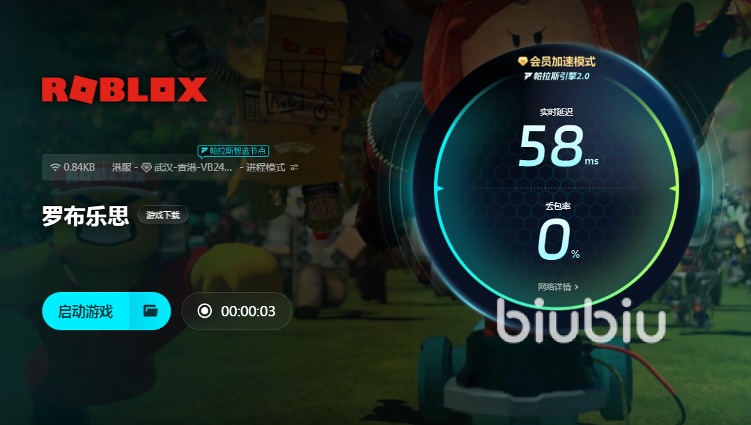 玩家在这款游戏中可以自己进行创作,利用平台提供的各种工具和资源,设计出独特的游戏场景、角色和剧情。创作的类型也非常多,涵盖了射击、竞速、解谜等多种类型,满足不同玩家喜好。甚至还开发出了自己专属的经济系统,通过出售游戏装备或者是虚拟物品,可以获得奖励并实现创作收益,这些都是其他很多游戏所不具备的优势。所以直到现在这款游戏依然经常处于服务器爆满的状态,这就容易导致卡顿、延迟等问题的发生。Biubiu加速器所具有的优化功能,非常适合这样的大型游戏使用,能够充分利用自身的技术实现优化。现在更是能支持免费试用,例如只需要重新注册一个新账号,就能立得三小时会员时间。每个号都有一次用兑换码的机会,兑换码是【biubiu不卡顿】,可免费换72小时会员时间。