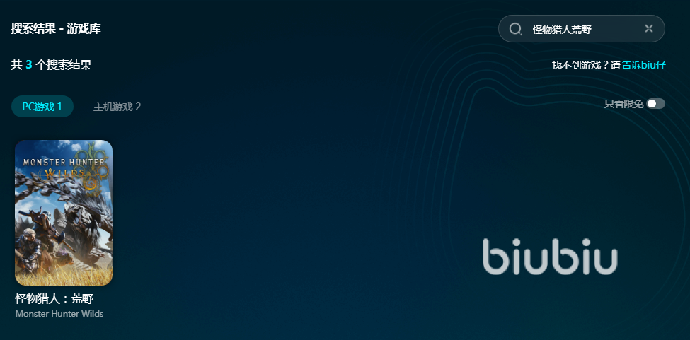 如果你没用过biubiu,就趁着现在有新用户免费加速3小时的活动来试一试吧。biubiu已经为大家准备好了怪物猎人荒野的加速资源,直接游戏库里搜索就能看到。大家如果输入小写【biubiu不卡顿】以后还能获得3天免费加速时长,不管加速什么游戏都能用免费的时长,诚意特别足。