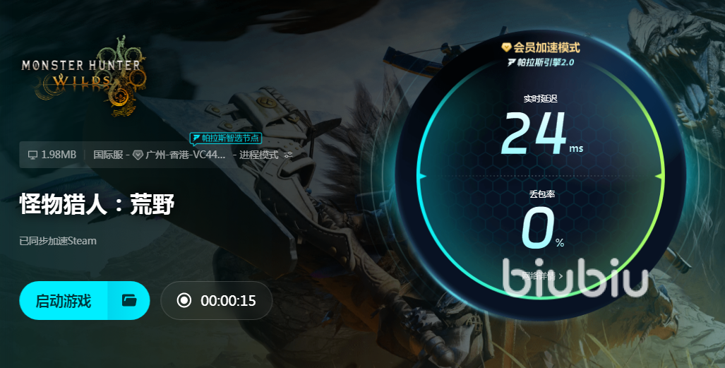 biubiu不仅启动方面连接迅速,加速效果也是很给力的,轻轻松松就能搞定延迟,玩游戏一点都感觉不到有波动有卡顿。而且它的加速效果很持久,不管用户是加速十分钟还是十个小时,网速都是一如既往地快而稳定,大家可以放心来玩怪物猎人荒野,维持网络环境这件事就交给biubiu。