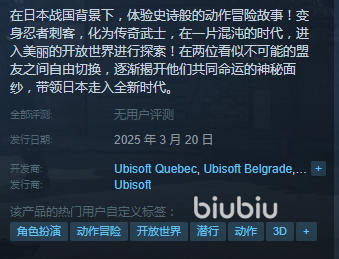 2025年01月31日 09:10 来源:吞噬再大针蜂这个系列算是育碧的招牌了,这次新作是将时间线放置在日本战国时期的,我们玩家也将扮演一个忍者刺客,开启自己的传奇暗杀之旅。但是由于不断优化完善的原因,官方是有好几次跳票的,刺客信条影什么时候发售大伙现在就非常关心,想要赶快玩到这款充满神秘气息的角色扮演类游戏。