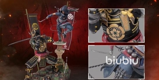 我们购买之后,是可以得到一个终极版的游戏光盘的,还有定制的铁盒,收藏艺术集等等,另外真实比例大小的武士刀“tsuba”也是存在的,还可以得到一个70*30cm尺寸的挂画,以及制纸质的游戏地图,最重要的男女主角弥助以及奈绪江的雕像都有的。