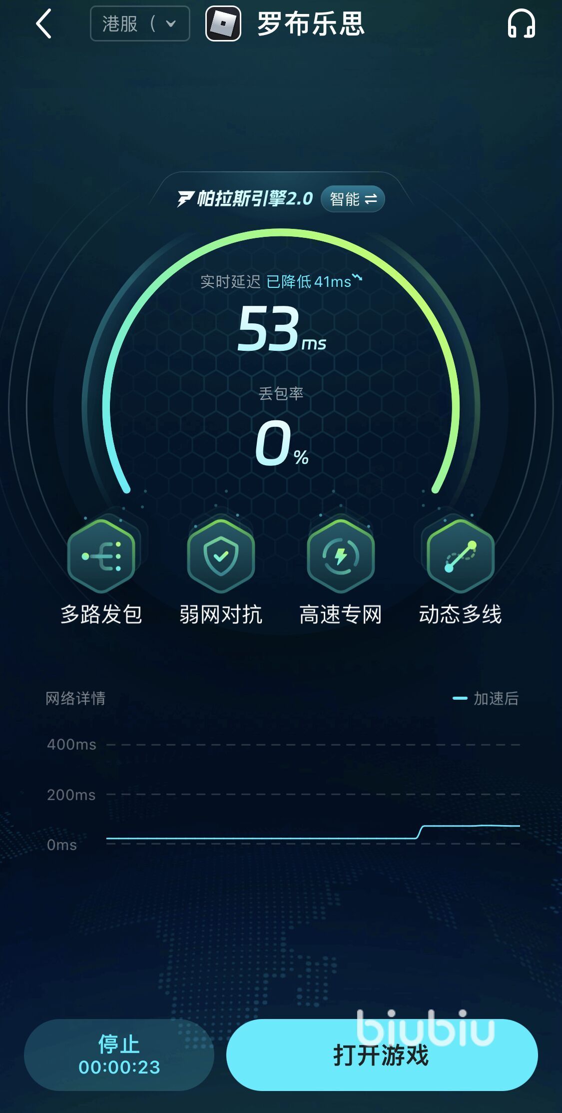 很多罗布乐思的老玩家都选择biubiu加速器,其实是因为它强大的加速功能和贴心的服务。对于新手来说,它也非常友好,用起来超级方便。只需下载安装好然后在主页搜索游戏名称,一键点击就能加速运行。智能模式下,它会为你选择最适合的网络节点和通路,进入游戏后默默在后台运行,几乎感觉不到它的存在。